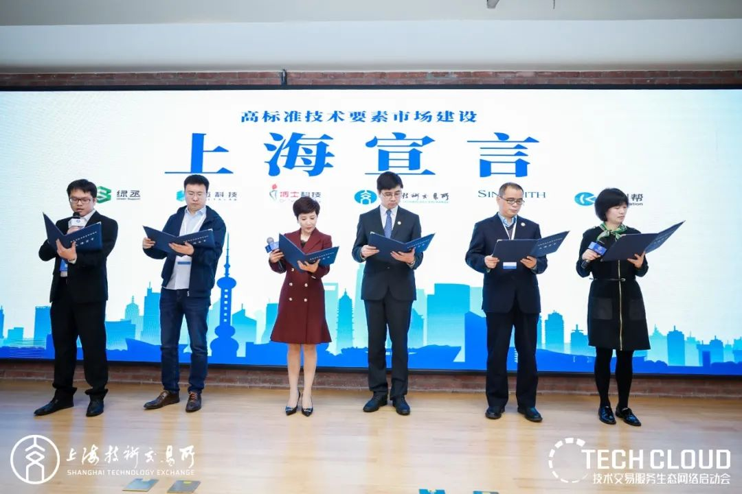 隨后,上海技術(shù)交易所總裁顏明峰與博士科技、邁科技、科創(chuàng )幫、綠丞科技、新諍信等五家技術(shù)市場(chǎng)合作伙伴的領(lǐng)導聯(lián)合發(fā)布《高標準技術(shù)要素市場(chǎng)建設上海宣言》?!渡虾P浴返陌l(fā)布標志著(zhù)高標準技術(shù)要素市場(chǎng)的建設有了統一的行動(dòng)機制與目標,也為上海技術(shù)交易所與這五家技術(shù)市場(chǎng)合作伙伴奠定了信任基石,并承諾未來(lái)將共同推動(dòng)技術(shù)交易全國市場(chǎng)聯(lián)動(dòng)與協(xié)作,為中國科技創(chuàng )新、技術(shù)轉移產(chǎn)業(yè)的發(fā)展貢獻力量。
