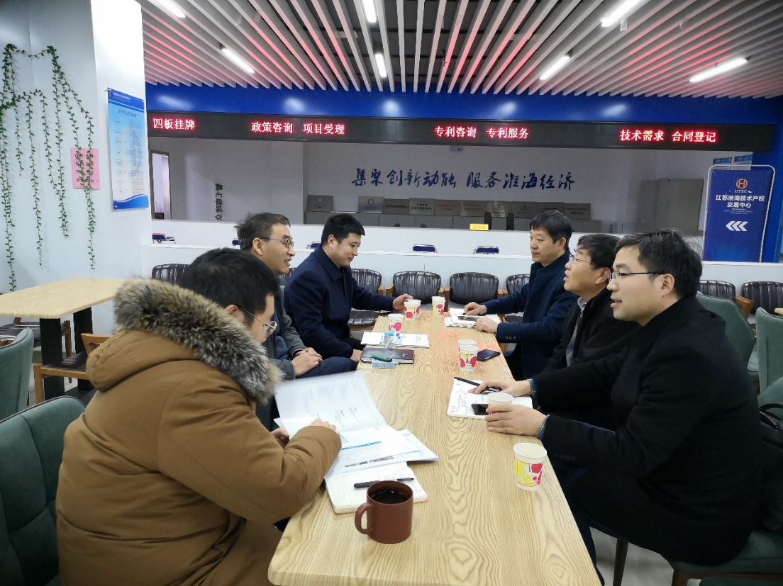 冉院長(cháng)一行先后參觀(guān)了一站式服務(wù)窗口、路演大廳等配套設施,聽(tīng)取了我中心建設和技術(shù)交易工作開(kāi)展情況。隨后,雙方在創(chuàng )客咖啡吧就籌備建立淮海經(jīng)濟區技術(shù)轉移聯(lián)盟、推進(jìn)高??萍汲晒D移轉化和高校人才創(chuàng )新創(chuàng )業(yè)發(fā)展、促進(jìn)區域高新技術(shù)對接合作等方面進(jìn)行了深入探討。各位專(zhuān)家分別介紹了各自學(xué)院優(yōu)勢學(xué)科與科技成果資源,希望與江蘇淮海技術(shù)產(chǎn)權交易中心進(jìn)一步加強聯(lián)系與合作,積極推進(jìn)高校與地方企業(yè)合作,促進(jìn)科技成果在淮海經(jīng)濟區域內的轉化與交易。